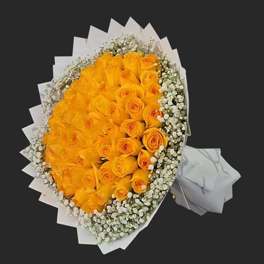 Bouquet de 50 rosas amarillas, baby breath y papel koreano.