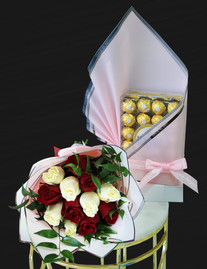 Floral arrangement composed of 12 white & red roses with Korean paper.🌹💐🌺